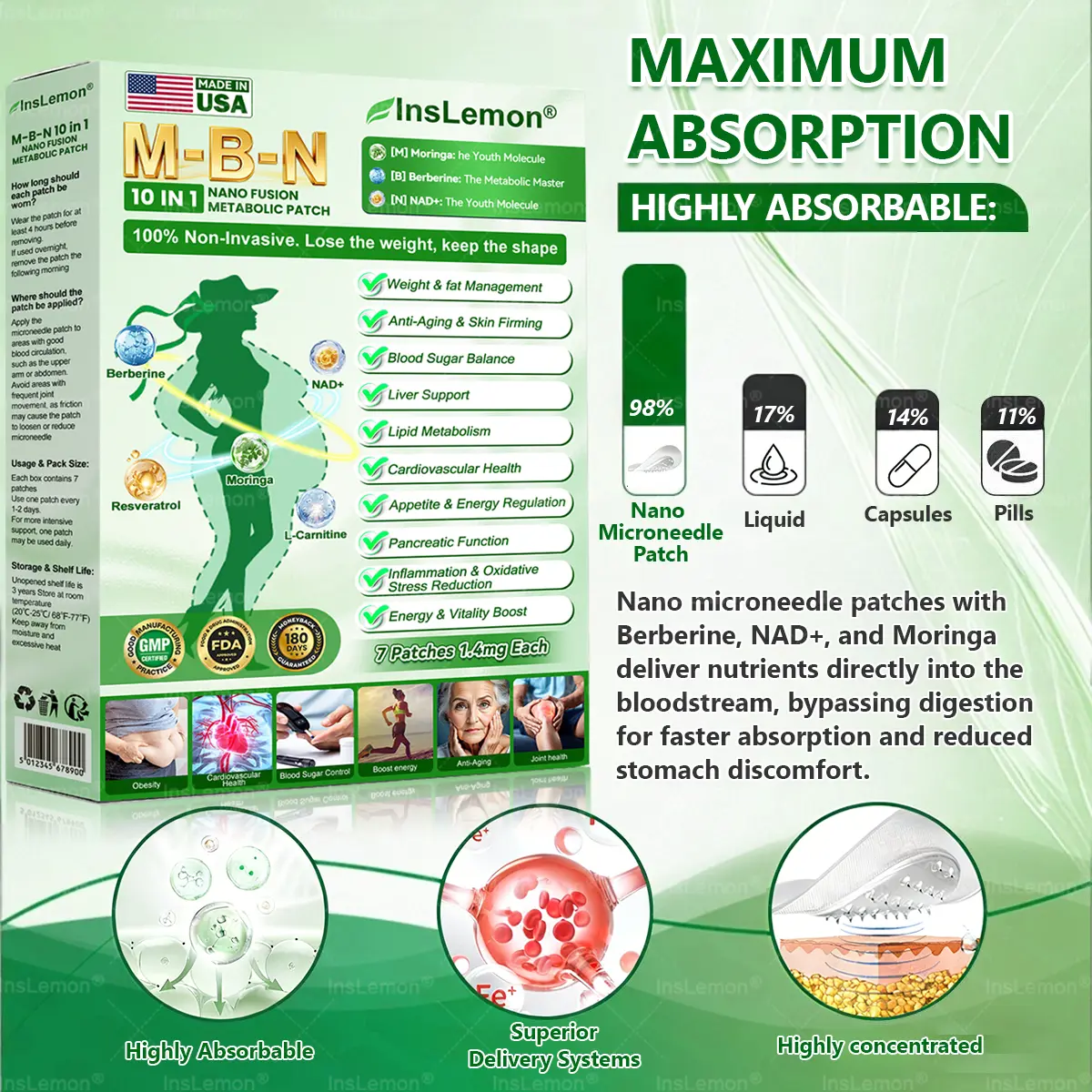 โ Easy Absorption: This formula uses an advanced nano microneedle ๐๐๐๐๐ delivery system. Combined with highly active ingredients such as ๐ฉ๐๐๐๐ฆ๐ณ๐๐๐, it delivers key nutrients transdermally into the body, bypassing the digestive system and reducing gastrointestinal burden. The ๐๐๐ก๐๐ provides gentle, steady release for a more comfortable experience, making it especially suitable for individuals with sensitive digestion and those who prefer to avoid injectable weight-loss methods.