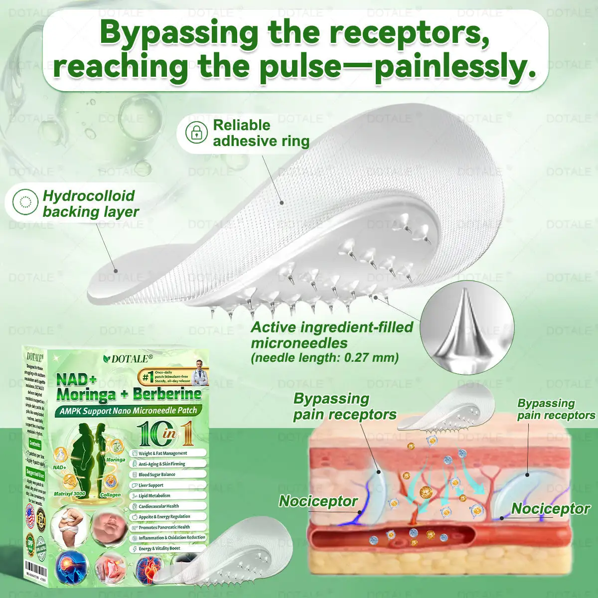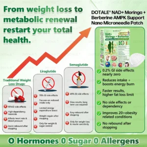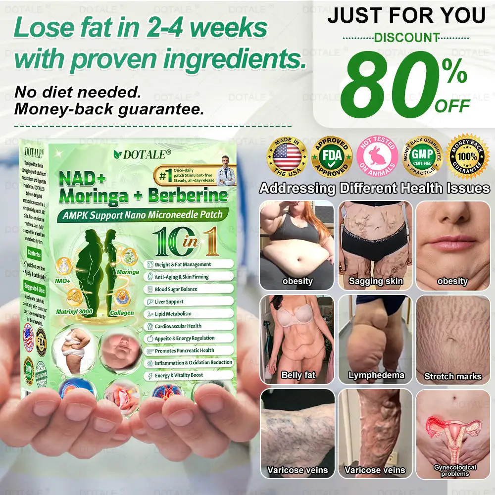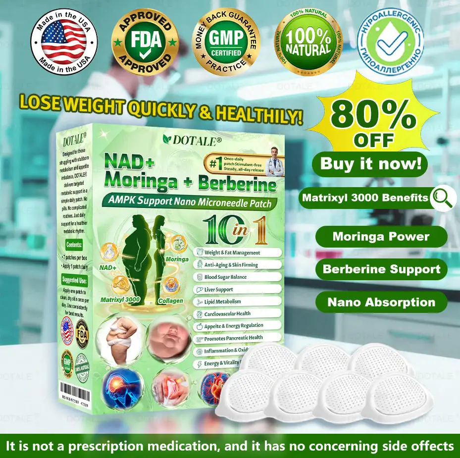 ✅𝑫𝑶𝑻𝑨𝑳𝑬® 𝑵𝑨𝑫+ 𝑴𝒐𝒓𝒊𝒏𝒈𝒂 𝑩𝒆𝒓𝒃𝒆𝒓𝒊𝒏𝒆 𝑨𝑴𝑷𝑲 𝑺𝒖𝒑𝒑𝒐𝒓𝒕 𝑵𝒂𝒏𝒐 𝑴𝒊𝒄𝒓𝒐𝒏𝒆𝒆𝒅𝒍𝒆 𝑷𝒂𝒕𝒄𝒉 breaking away from the burden of traditional injectable or oral weight-loss products, this advanced nano microneedle transdermal delivery system gently and steadily releases active ingredients for up to 8 hours. Core ingredients Moringa and Berberine work synergistically to support appetite management and lipid metabolism, making fat loss feel more natural and effortless—without extreme dieting or physical strain. At the same time, NAD⁺ supports cellular energy levels and skin firmness, helping maintain a healthy, well-toned appearance during body-weight changes. The overall formula is gentle and stable, offering a more comfortable experience for those seeking an effective, non-irritating, and non-injectable approach to weight management.