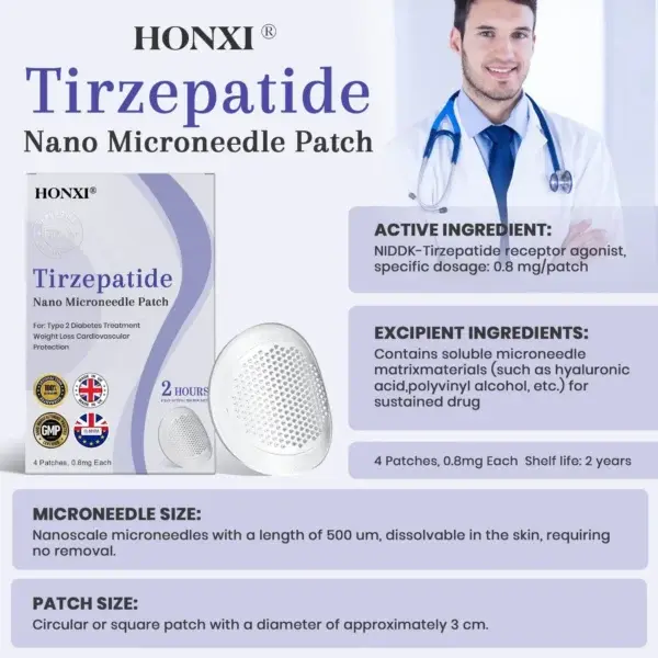 Letโs take a look at what makes the HonxiยฎNIDDK-Tirzepatide Nano Microneedle Patchย so special.