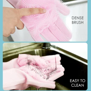 Magic Silicone Dish Washing Gloves is a double-functional gloves with silicone gloves and cleaning scrubber for EASY & PERFECT cleaning!