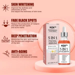 HZA™ 5 in 1 Facial Serum is specially designed to eliminate wrinkles, spots, and moisturize the skin on the face and body. It promotes cell regeneration and helps you reverse aging. ❤️