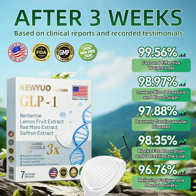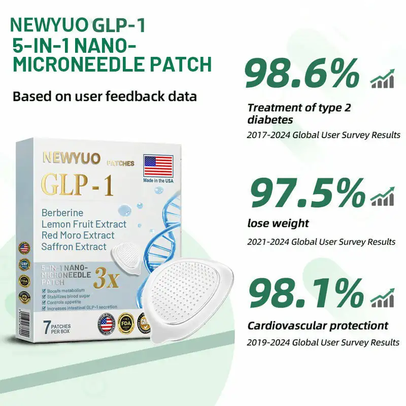 Product Specifications![[🧘🏼Naturally shape your body]💎 Newyuo® 5-in-1 GLP-1 NANO MICRONEEDLE PATCHES(Zero Pain, 24/7 Release | Lose 20lbs FAST | 90% Sugar Drop | )](https://cdn.shopify.com/s/files/1/0860/4306/6615/files/28.jpg?v=1745421996)