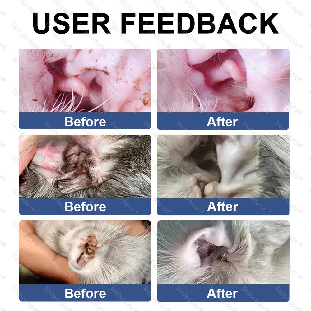 A: Apply drops → massage the base of the ear for 20 seconds → let your pet shake → wipe the outer ear with a cotton ball. Don’t use cotton swabs deep inside. - Q: Why does there seem to be more discharge or odor after using drops?