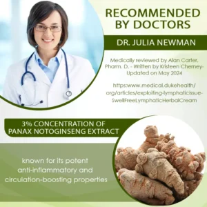 DetoxFlow™ Advanced SwellCare Lymphatic Cream is formulated with the powerful ingredients Panax notoginseng and its key components, Ginsenosides and Notoginsenoside. Ginsenosides improve circulation and reduce fluid retention, making it effective in managing edema and promoting healthy lymphatic function.