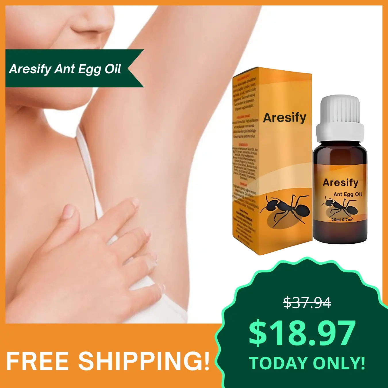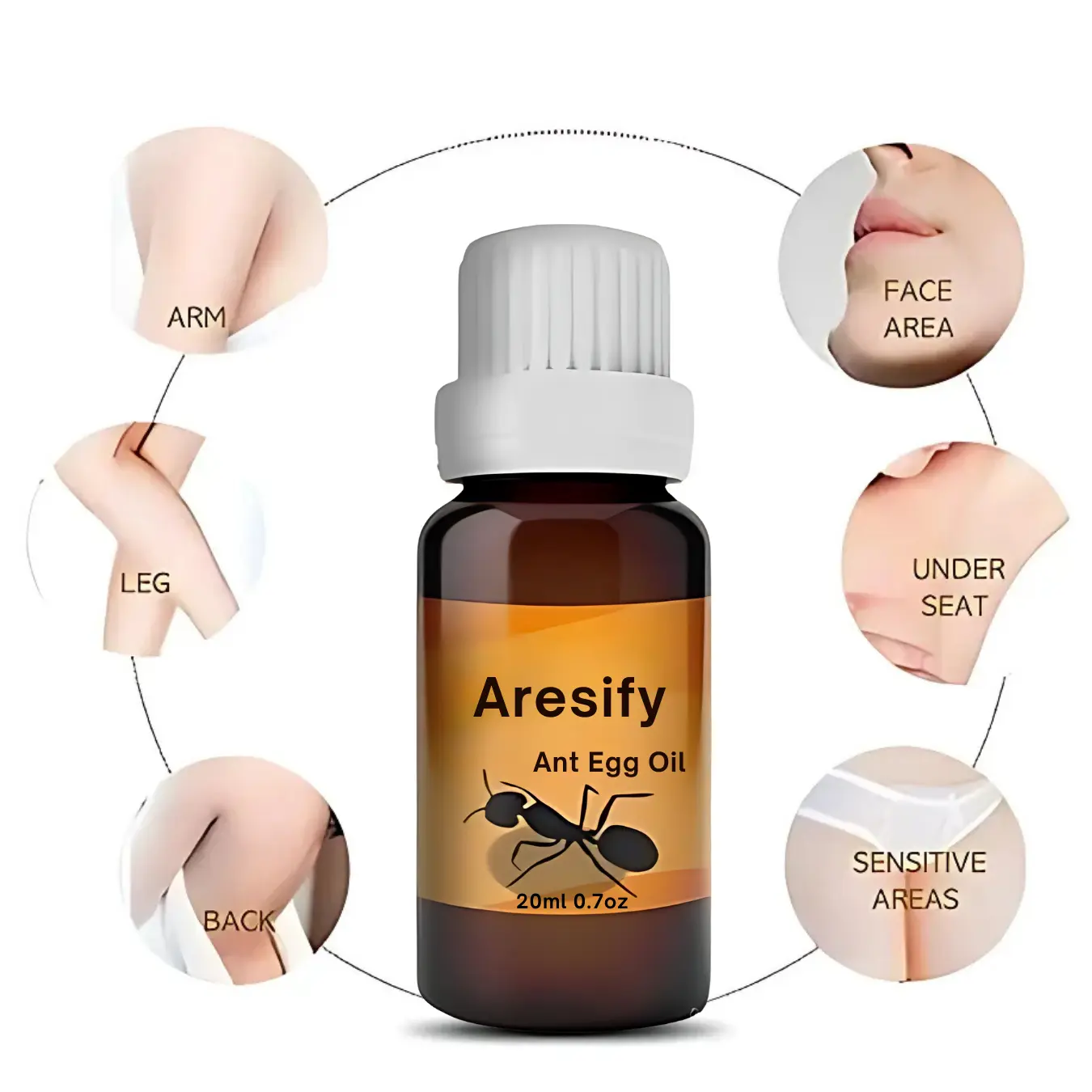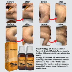 Introducing Aresify® ANT EGG OIL, a sensitive skin care product that harnesses the power of natural ant egg extract as its key ingredient. This oil is expertly designed to induce cell apoptosis and provide deep nourishment to the epidermis. Its distinctive formulation effectively prevents the growth of new blood vessels, ensuring profound cell hydration and regeneration. The outcome is skin that feels smoother and appears more delicate. Derived from ant egg extract, the product naturally inhibits hair growth while incorporating a variety of nourishing ingredients. It is perfect for application on multiple areas such as armpits, necklines, arms, facial areas, and more. Aresify® ANT EGG OIL is mild, non-irritating, and suitable for all skin types.