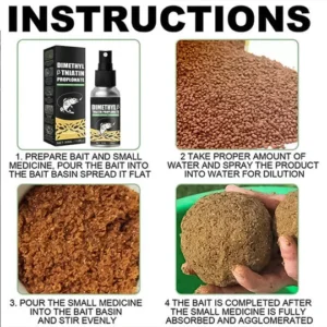 • 🐟 Can be used for: reservoir/lake/river/black pit, no more than ten sprays per 100g bait/bed material to avoid dead nests, and the nest material can be diluted with water after mixing.