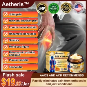 Introducing the 𝑨𝒆𝒕𝒉𝒆𝒓𝒊𝒔™ 𝑩𝒆𝒆 𝑽𝒆𝒏𝒐𝒎 𝑨𝒅𝒗𝒂𝒏𝒄𝒆𝒅 𝑱𝒐𝒊𝒏𝒕 𝒂𝒏𝒅 𝑩𝒐𝒏𝒆 𝑻𝒉𝒆𝒓𝒂𝒑𝒚 𝑪𝒓𝒆𝒂𝒎, your perfect companion for enhanced joint and bone health! Through our collaboration with foremost experts in naturopathy and apitherapy, we have developed a cutting-edge cream that leverages the therapeutic benefits of natural bee venom to address a wide array of health issues. The 𝑨𝒆𝒕𝒉𝒆𝒓𝒊𝒔™ advanced therapy cream is your pathway to a pain-free and healthier lifestyle, enabling you to fully engage in your daily routines. Moreover, our cream is formulated to improve joint flexibility and promote overall wellness.