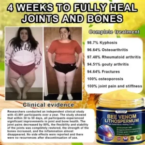 “I suffered from severe knee pain and swelling due to an old injury. The discomfort made it difficult for me to walk, climb stairs, or get through my day without pain. I had tried countless treatments and spent a fortune on physical therapy, but nothing provided lasting relief. Frustrated, I came across the Purelora® BEE VENOM LITHOSPERMUM Pain-Relief Bone Healing Cream and decided to give it a try. I applied it 2-3 times a 1day, and within just a few days, the swelling started to decrease, and the pain became much more manageable. After two weeks, my knee felt stronger, and I could walk without constant discomfort. Six weeks later, I was back to my usual activities, pain-free. This cream has changed my life and given me the mobility and freedom I thought I had lost forever!” – Noah Anderson