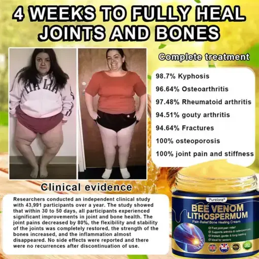 The Purelora® BEE VENOM LITHOSPERMUM Pain-Relief Bone Healing Cream is known for its effectiveness in treating a variety of orthopedic issues.