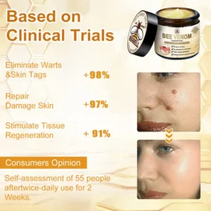 Another significant advantage of bee venom is its capacity to enhance blood circulation. By stimulating blood flow in the targeted region, it supports the elimination of skin tags and warts while fostering tissue regeneration and accelerating the healing process. This contributes to the restoration and revitalization of impaired tissues. Additionally, the cream helps maintain skin elasticity and firmness, ensuring long-term skin health.