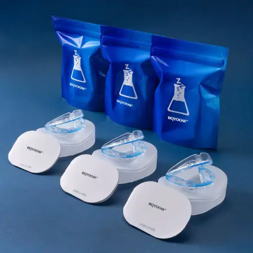BQYOOM is an ultra-thin mouthpiece developed by a leading Italian orthodontist that you place in your mouth before going to sleep.
