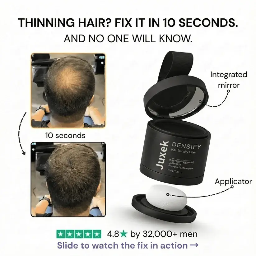 A quick-apply powder that bonds to every hair strand — even the ones you can’t see — to instantly fill in thin and balding spots. No surgery, no waiting months. Just full, natural-looking hair in seconds.