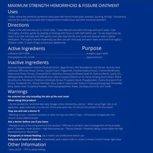 Made with maximum strength phenylephrine, a vasoconstrictor that shrinks swollen tissue. We combine that with Lidocaine, a strong topical pain reliever for a doubly effective ointment.