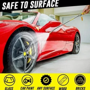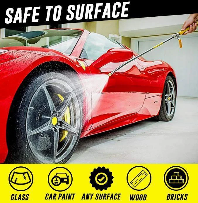 This high-pressure washer removes dirt buildup and molds on wood, aluminum, vinyl siding, concrete foundations, brick, stone, and much more! You can easily wash your car, truck, camper, or boat, and tackle dirty wheels and rims. Guaranteed to be safe on any surface and will not strip wood, car paint, or clear coat.