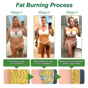 Tirzepatide, combined with apple cider vinegar and powerful moringa extract, helps the body use fat stores more effectively for energy. By improving insulin sensitivity, it accelerates fat burning, especially during calorie reduction or increased physical activity. The apple cider vinegar stabilizes blood sugar levels and prevents excess glucose from being stored as fat.