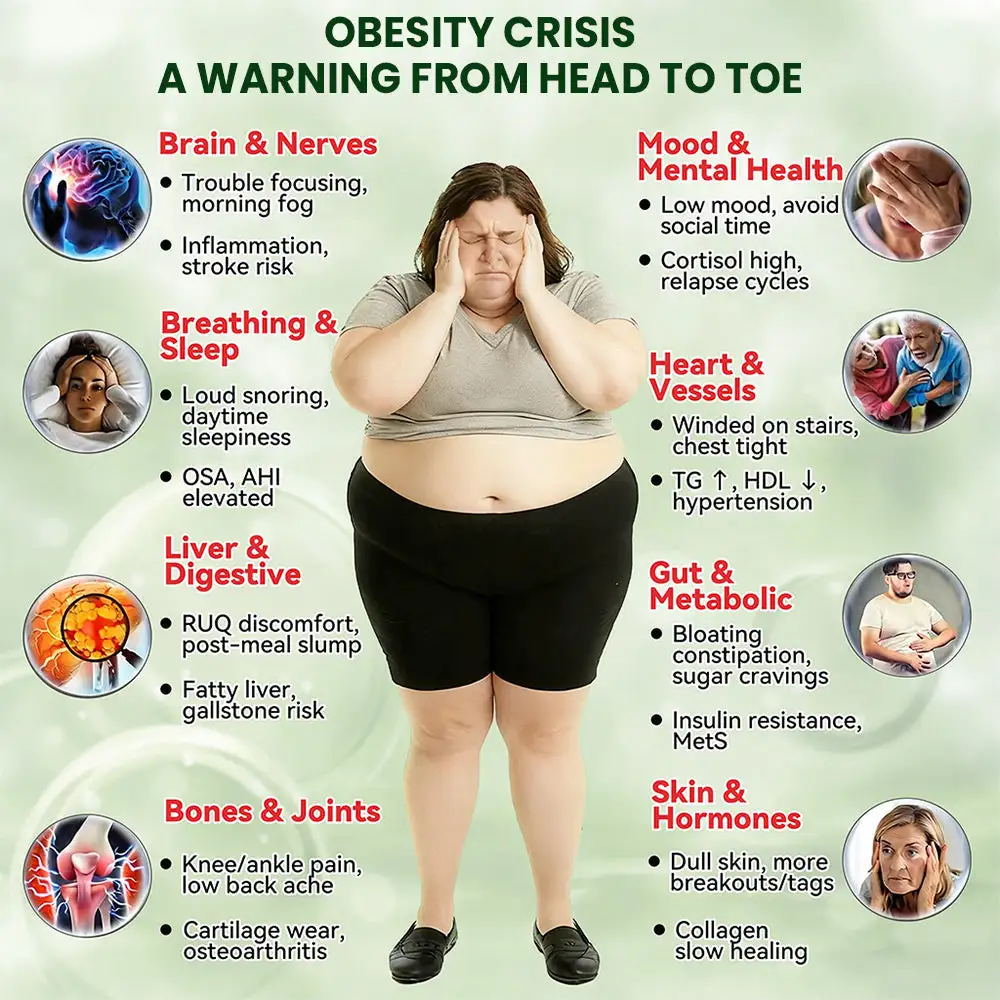 💤 Sleep Apnea: Causes chronic fatigue and heart strain.