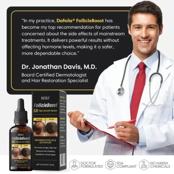Dafeila® FollicleBoost 5X revives dormant follicles to restore hair growth fast—no irritation, no shedding phase, visible results in weeks.