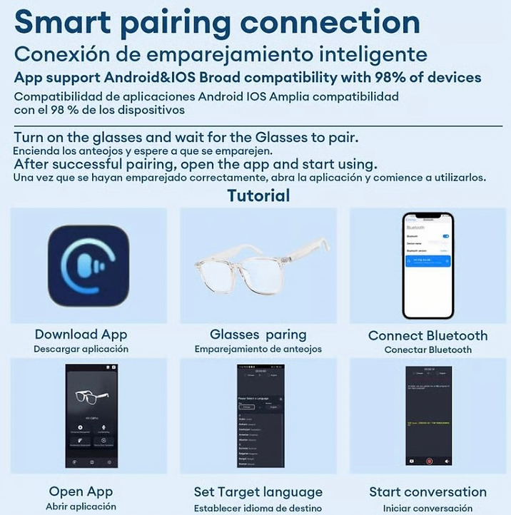 HY-C8 AI Wireless Bluetooth Translation Glasses
