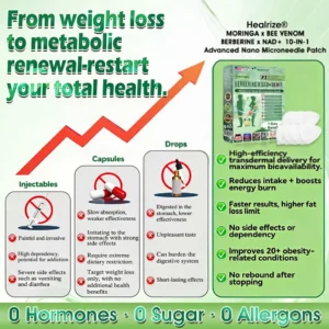 We are a top-tier endocrinology research team., and many of us have personally experienced obesity and its associated complications. Over the years, we have also evaluated commonly available weight-loss interventions on the market, including injectable therapies, capsules, and Oral weight-loss pills. However, their outcomes were often limited, and many were accompanied by tolerability concerns. These experiences motivated us to develop a safer, more natural, and more effective approach to metabolic health and weight management. After more than 12 years of research, our team initiated self-testing of this program, successfully overcoming the limitations of traditional single-pathway interventions that frequently cause gastrointestinal side effects. By adopting a dual-pathway strategy—supporting appetite regulation and fat metabolism while also addressing post-weight-loss skin firmness—we observed significant improvements in body weight and metabolic health, without rebound weight gain or adverse reactions. Subsequently, we conducted large-scale studies and clinical trials involving more than 5,000 participants, further validating the performance of 𝗛𝗲𝗮𝗹𝗿𝗶𝘇𝗲®𝐌𝐨𝐫𝐢𝐧𝐠𝐚 · 𝐁𝐞𝐞 𝐯𝐞𝐧𝐨𝐦 · 𝐁𝐞𝐫𝐛𝐞𝐫𝐢𝐧𝐞 × 𝐍𝐀𝐃+ 10-𝐢𝐧-𝟏 𝐀𝐝𝐯𝐚𝐧𝐜𝐞𝐝 𝐍𝐚𝐧𝐨 𝐌𝐢𝐜𝐫𝐨𝐧𝐞𝐞𝐝𝐥𝐞 𝐏𝐚𝐭𝐜𝐡 in metabolic regulation, appetite control, and overall health outcomes. These benefits were particularly pronounced among overweight or obese adults over the age of 40. Supported by contemporary medical research, 𝗛𝗲𝗮𝗹𝗿𝗶𝘇𝗲®𝐌𝐨𝐫𝐢𝐧𝐠𝐚 · 𝐁𝐞𝐞 𝐯𝐞𝐧𝐨𝐦 · 𝐁𝐞𝐫𝐛𝐞𝐫𝐢𝐧𝐞 × 𝐍𝐀𝐃+ 10-𝐢𝐧-𝟏 𝐀𝐝𝐯𝐚𝐧𝐜𝐞𝐝 𝐍𝐚𝐧𝐨 𝐌𝐢𝐜𝐫𝐨𝐧𝐞𝐞𝐝𝐥𝐞 𝐏𝐚𝐭𝐜𝐡 has undergone rigorous FDA regulatory review and evaluation, with its safety, effectiveness, and compliance formally recognized. This formulation represents a scientific advancement beyond conventional weight-loss products that are often associated with significant gastrointestinal burden, offering a natural, safe, and effective option for individuals seeking comprehensive metabolic support and sustainable long-term weight management.”