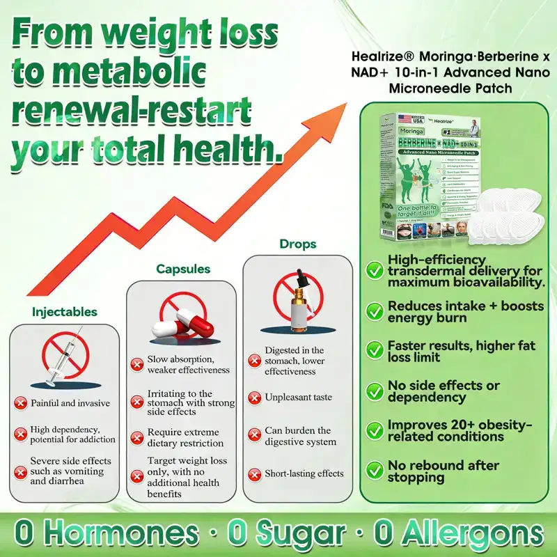 Clearenaยฎ Moringaยท Berberine x NAD+ 6-in-1 Advanced Nano Microneedle Patch: 98% Absorption Rate, Transforming Weight, Liver, Gut & Skin Health