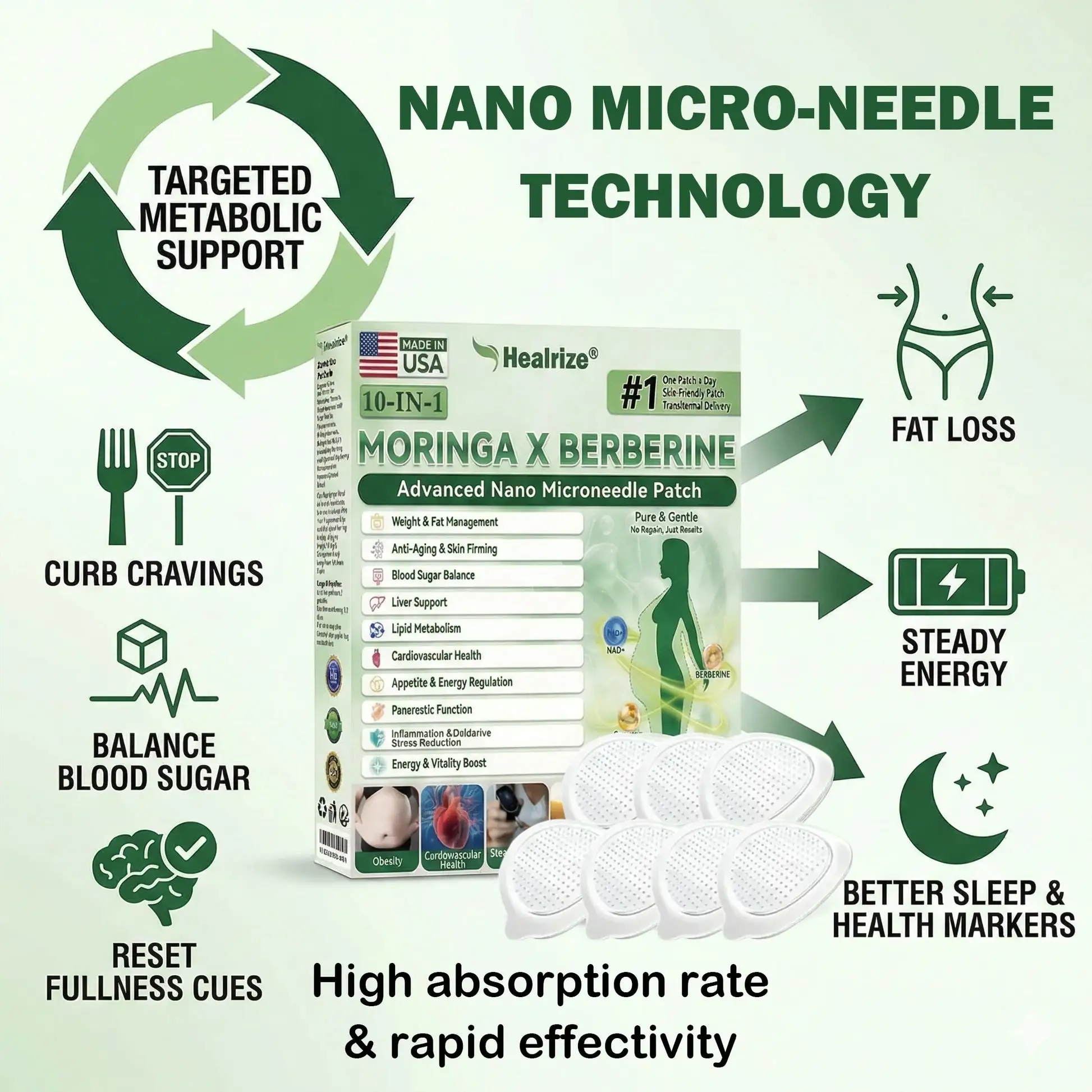 Healrize® MORINGA,BERBERINE & NDA+NMN Advanced Nano Microneedle Patch