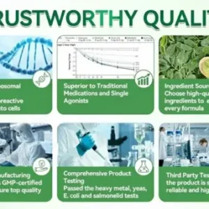 This 100% natural, plant-based formula is scientifically designed to work in harmony with the body and can be safely used alongside other medications or foods. It is vegan-friendly and highly absorbable, free from hormones, sulfates, and common allergens, and contains no heavy metals, mineral oil, or carcinogenic sunscreen ingredients. It is also free from artificial colors, fragrances, and preservatives. After transdermal absorption, the active ingredients are transported through the bloodstream to target organs for precise support. Safe, reliable, cruelty-free, and suitable for all body types, this clinically tested formula delivers visible results in as little as 7 days.