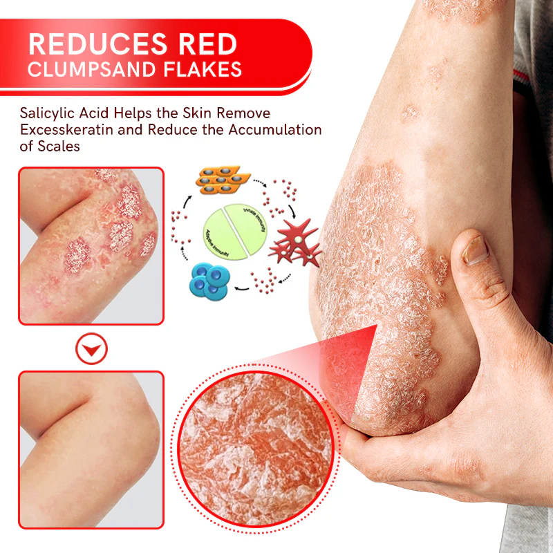 5% Salicylic acid: Salicylic acid, an anti-inflammatory, eases psoriasis symptoms, reducing redness and itching. It exfoliates, promoting skin cell growth for faster recovery, and has antibacterial properties to control infections.