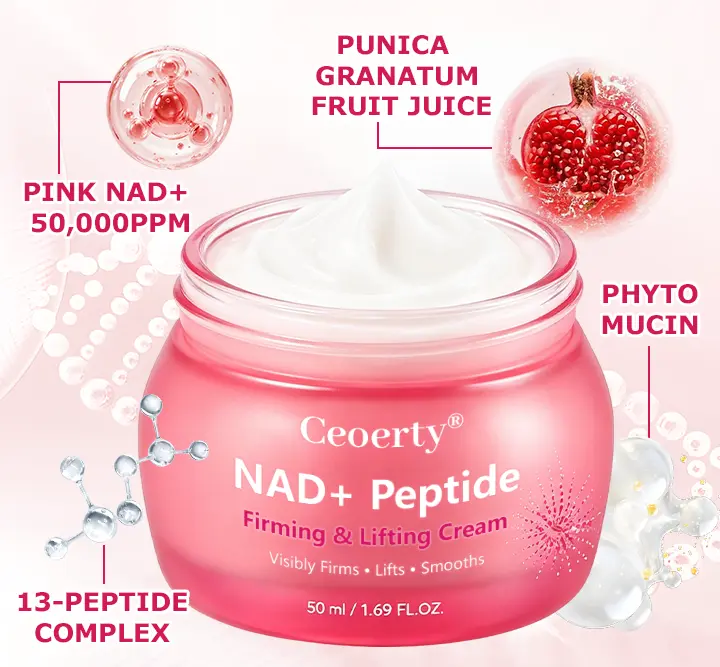 Timilk® NAD+ Peptide Firming & Lifting Cream is your advanced solution for restoring youthful, resilient skin. Its Pink NAD+ 50,000 PPM, 13-Peptide Complex, and Phyto Mucin work in harmony to lift, tighten, and smooth—targeting fine lines, wrinkles, and sagging. Suitable for all skin types, it deeply nourishes while supporting collagen and elastin for lasting firmness and radiance.