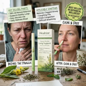 Say goodbye to cough, chest tightness, shortness of breath, and nighttime snoring 😴. Healrize® Natural Lung Support Mullein Diffuser combines 50:1 concentrated mullein extract, anti-inflammatory bio-flavonoids, NAC, Ivy, Bromelain, Peppermint & Eucalyptus 🍃. It delivers fast, direct lung support, relieves discomfort from smoking or polluted air, repairs lung tissue, naturally purifies airways, and keeps your breathing smooth and comfortable every day.