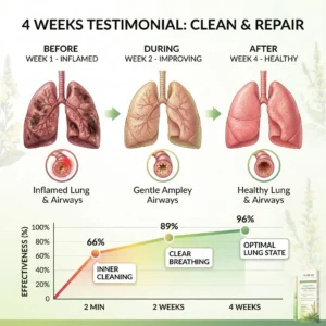 - 4 Weeks: By 4 weeks, the mucosal lining of your lungs begins to regenerate, airways feel open, and deep lung recovery is underway. Persistent chest tightness, shortness of breath, and phlegm are significantly reduced. Enjoy restored lung function, refreshed breathing, and long-term respiratory wellness.