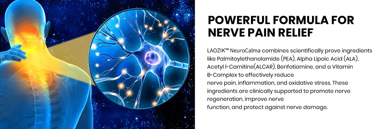 Addressing nerve pain at its core with a formula backed by cutting-edge research. Laozik™ NeuroCalma uses scientifically proven ingredients to restore nerve health and promote long-lasting relief.