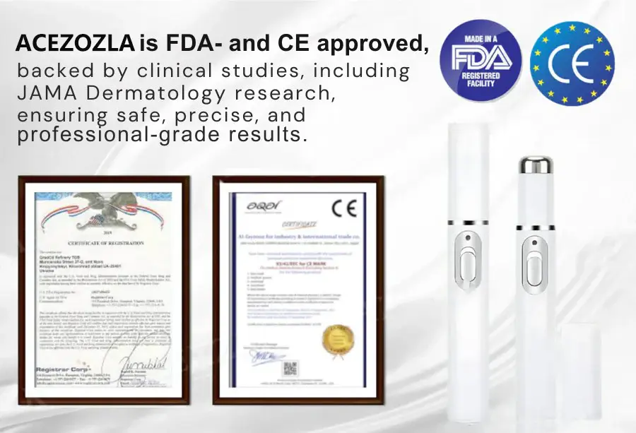 ✅ Yes! ACEZOZLA™ is FDA & CE approved, dermatologist-tested, and designed for safe, painless, and non-invasive at-home use. It delivers professional-grade results without the risks of surgery or harsh chemicals.