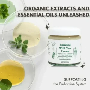 Organic Wild Yam Cream restores hormonal balance, alleviates menstrual discomfort, and promotes emotional well-being with its natural, botanical formula.