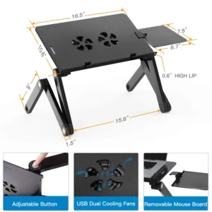 • Ergonomic Design – This Adjustable Laptop Table Desk is designed with complete focus on the user so so that you can use your computer in the most comfortable position. It will reduce neck and back stress from hours of using your computer and can prevent poor posture.