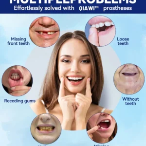 The QIAWI 2-Piece Denture Kit provides an exceptional alternative to traditional dental implants, offering convenience and affordability. Priced at just $29.99, this innovative solution allows you to restore your smile and improve chewing function without enduring the high costs and long treatment times associated with dental implants, which can run into tens of thousands of dollars. Choose QIAWI for a cost-effective, easy-to-use option that helps ou achieve a confident, beautiful smile—quickly and affordably.