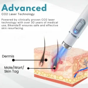Bikenda® utilizes advanced CO₂ laser technology to target and eliminate moles, warts, skin tags, and pigmentation issues with precision. When applied to the skin, the device releases high-temperature electrical ion energy, which works by breaking down melanin and dissolving unwanted tissue at the cellular level. This process effectively reduces dark spots, blemishes, and skin growths without the need for harsh chemicals or invasive procedures. Unlike traditional treatments that may cause scarring or irritation, Bikenda®’s ultra-pulsed mode ensures controlled, layer-by-layer removal, minimizing the risk of thermal damage while promoting natural healing.