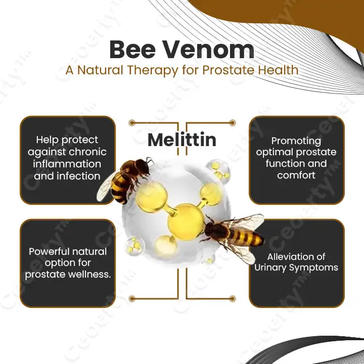 Bee venom supports prostate health by reducing inflammation, boosting blood flow, and providing natural pain relief. Its bioactive compounds, like melittin, help protect against chronic inflammation and infection while promoting optimal prostate function and comfort, making it a powerful natural option for prostate wellness.