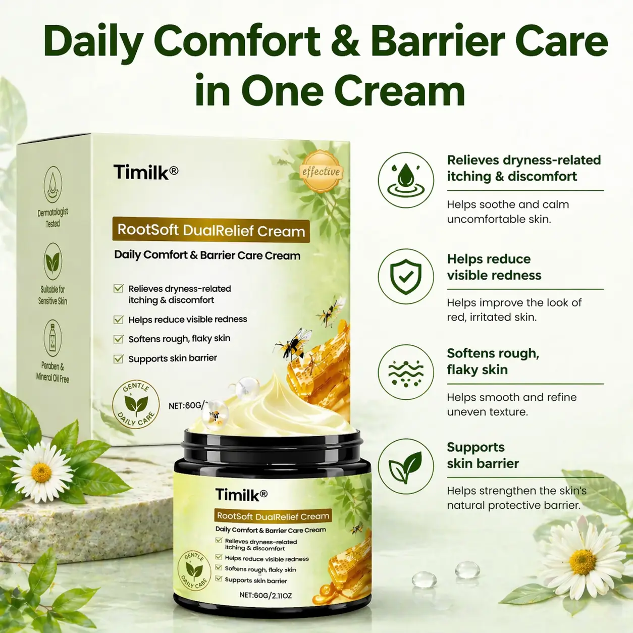 Our Cream is designed to help soothe visible redness, soften rough texture, and support your skin barrier — all in one gentle daily formula.