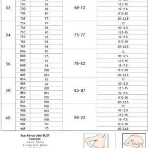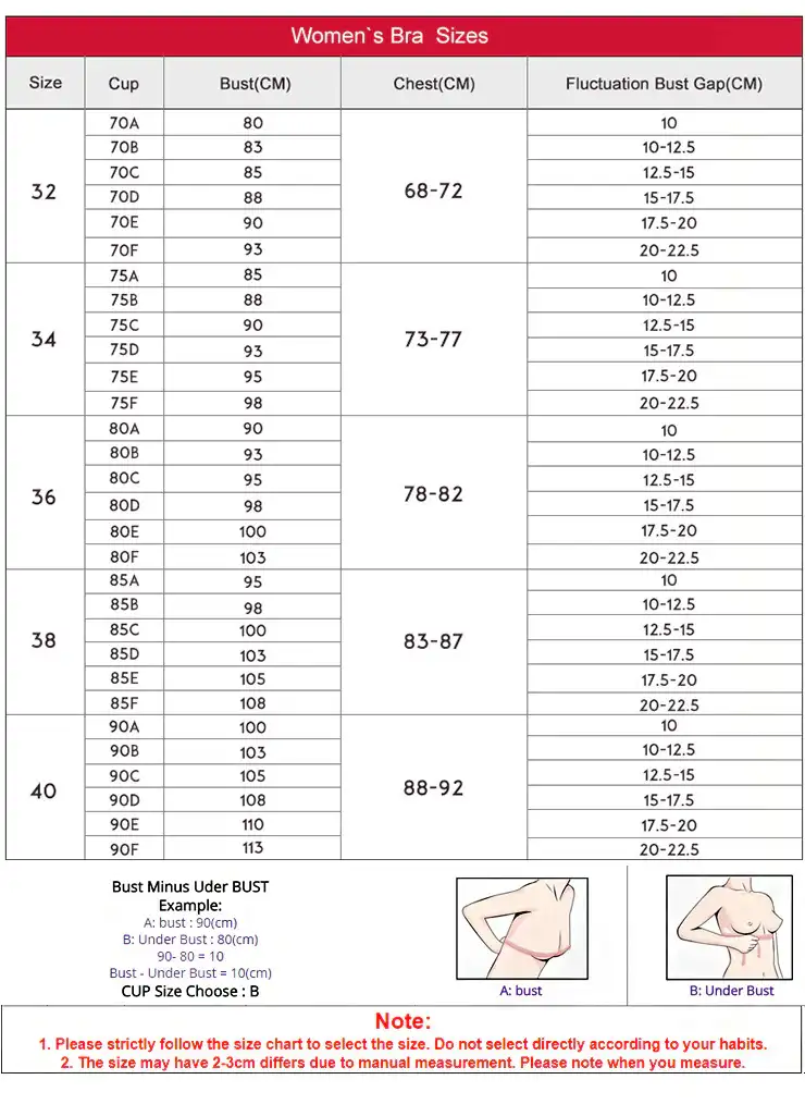 | Size | 70A, 70B, 75A, 75B, 75C, 80A, 80B, 80C, 85A, 85B, 85C, 90C |