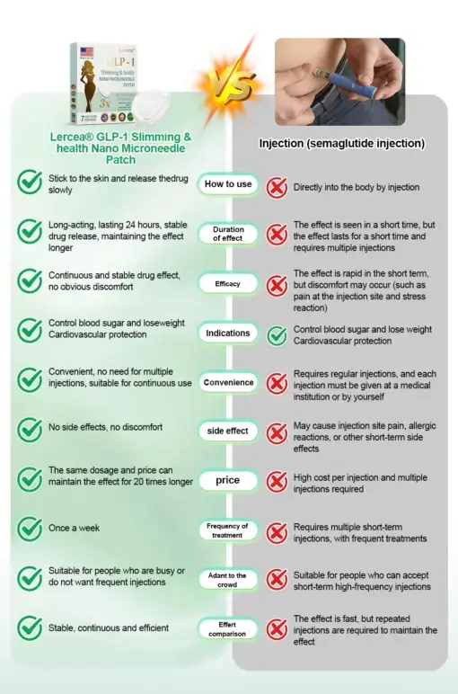 The 𝐋𝑬𝘙𝐶𝘌𝘼® Tirzepatide Nano Microneedle Patch offers a long-lasting. slow release of the medication. ensuring a stable effect over 24 hours without causing any discomfort. With the same dosage and price. it can maintain up to 20 times longer-lasting effects (similar to the difference between an IV drip and a single injection).