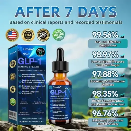 Clinically tested by endocrinologist, Croaie® GLP-1 Slimming & Health Ultra Concentrated Essence Liquid drops activation can significantly improve obesity and other health issues within just 7days.