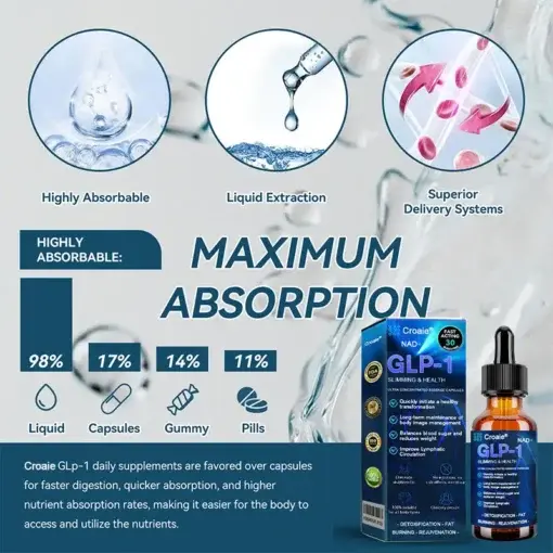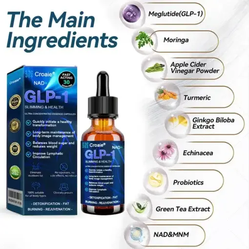 Croaie® GLP-1 Slimming & Health Ultra Concentrated Essence Liquid drops helps retrain your body to burn fat more efficiently — especially the deep visceral fat that builds up around the belly, liver, and internal organs. Thanks to a powerful blend of Moringa, NAD+, Apple Cider Vinegar, and Keto BHB, it gently signals your body to: Stop storing excess calories as fat, Start using fat for energy — even while at rest, Naturally reduce appetite and cravings without relying on willpower or strict dieting. Unlike crash diets, Croaie® promotes steady, long-term fat loss with no harsh side effects or rebound.