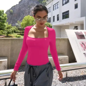 Slimoly Square Neck Long Sleeve Bodysuits