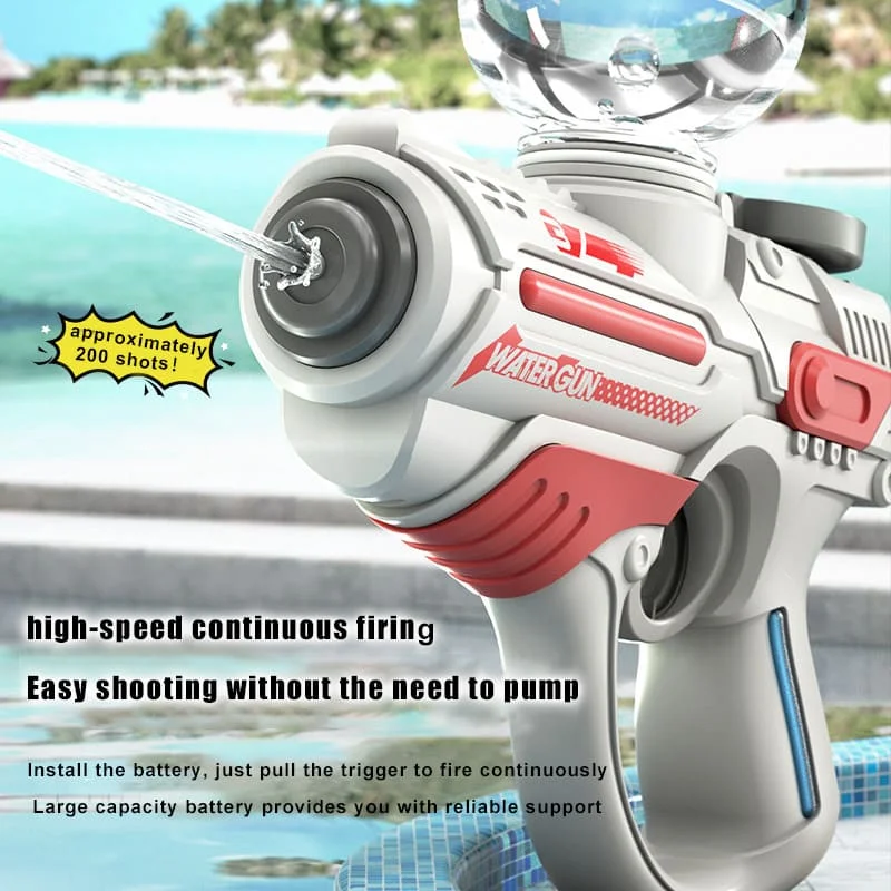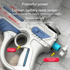 The Space Electric Water Gun is the perfect summer toy for kids to play with in pools, beaches, and outdoor spaces. It’s a wonderful summer gift for children. (Do not submerge the electric water gun in water to avoid damaging the electronic components!)