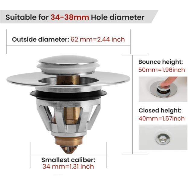 Home » Shop » Stainless Steel Rebound Core Push Drain Filter Prevents
