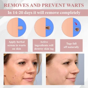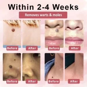 - Once dried, gently peel off the mask and watch skin tags or blemishes lift away.