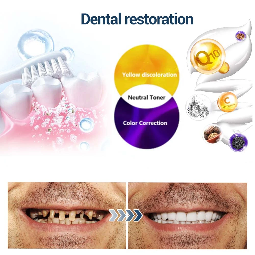 Experience noticeable whitening results in just one week with 𝐃𝐎𝐂𝐓𝐈𝐀™ Teeth Restoration Toothpaste Gel. Purple is the opposite and complementary color of yellow on the color wheel, so applying water-soluble purple dye to your teeth will counteract any yellow undertones. Plus, its vitamin C-rich formula removes plaque, tartar, and discoloration, restoring teeth to their natural whiteness.