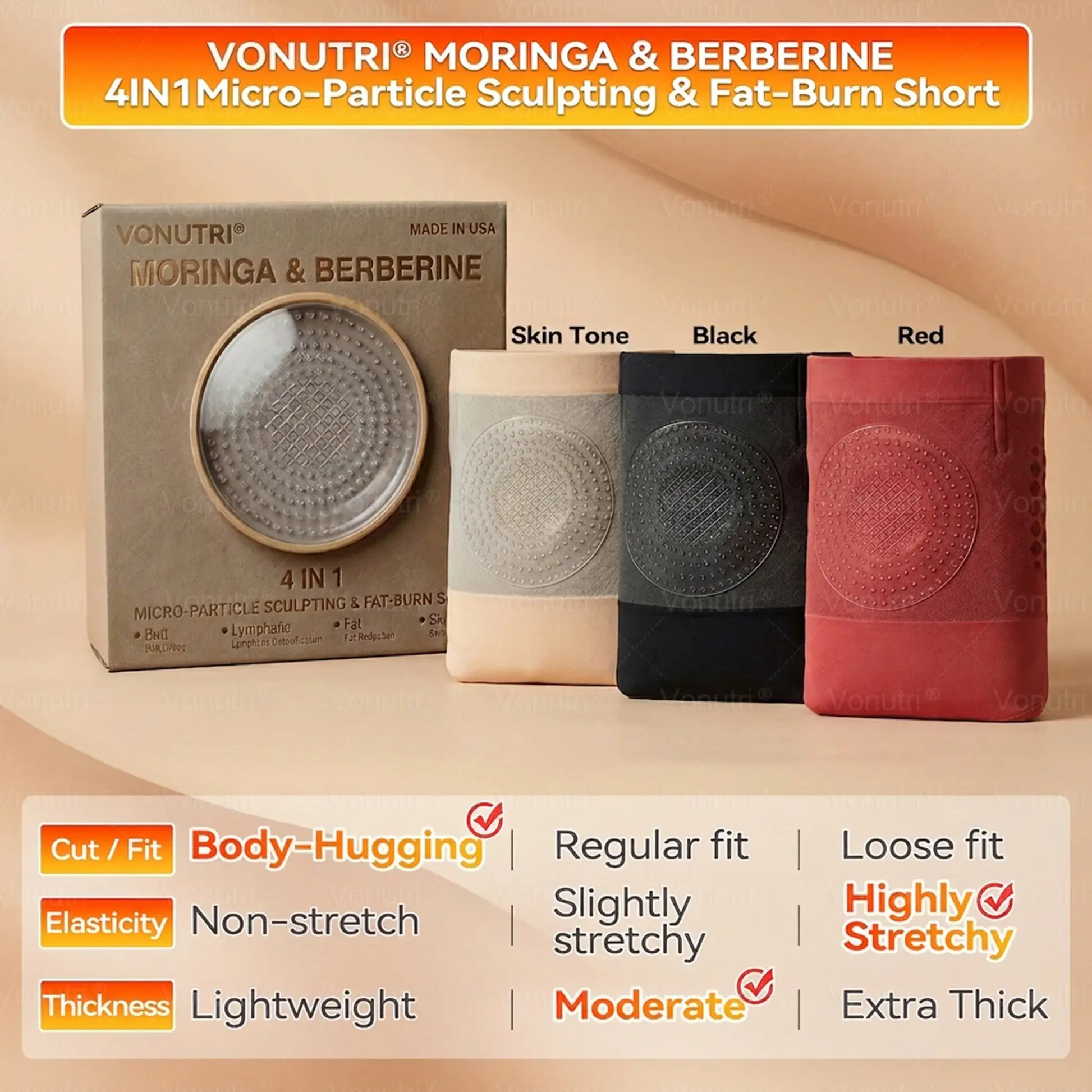Vonutri® Thermogenic Fat-Burning Sculpting Shorts are designed to simulate a high-intensity metabolic state while you wear them, helping to activate circulation and boost metabolic activity, so your body can use fat as an energy source more efficiently.