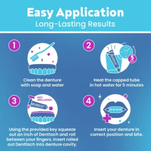 ✔️ Clean and Non-Toxic – Applies smoothly without creating a mess, easy to remove, and features a zinc-free formula suitable for all plastic and porcelain dentures.