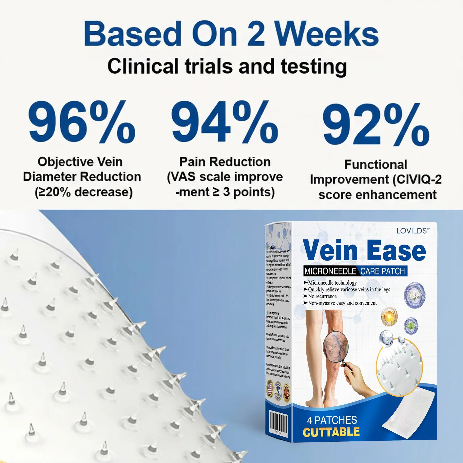 LOVILDS™ VeinEase is the first GMP-certified Alpine herbal microneedle patch with a clinically proven 96% success rate in treating chronic venous insufficiency at home. Its breakthrough transdermal delivery system penetrates 100x deeper than topical creams and delivers visible vein reduction in just 7–14 days. Skip the costly surgical procedures and restore healthy circulation naturally – all from the comfort of your home.